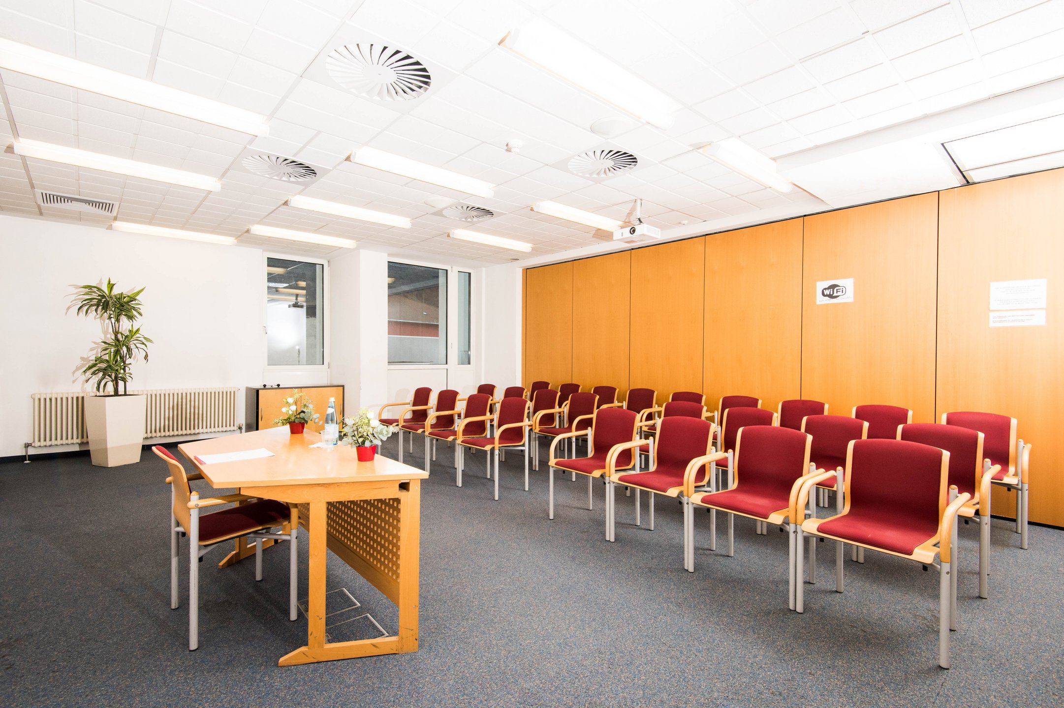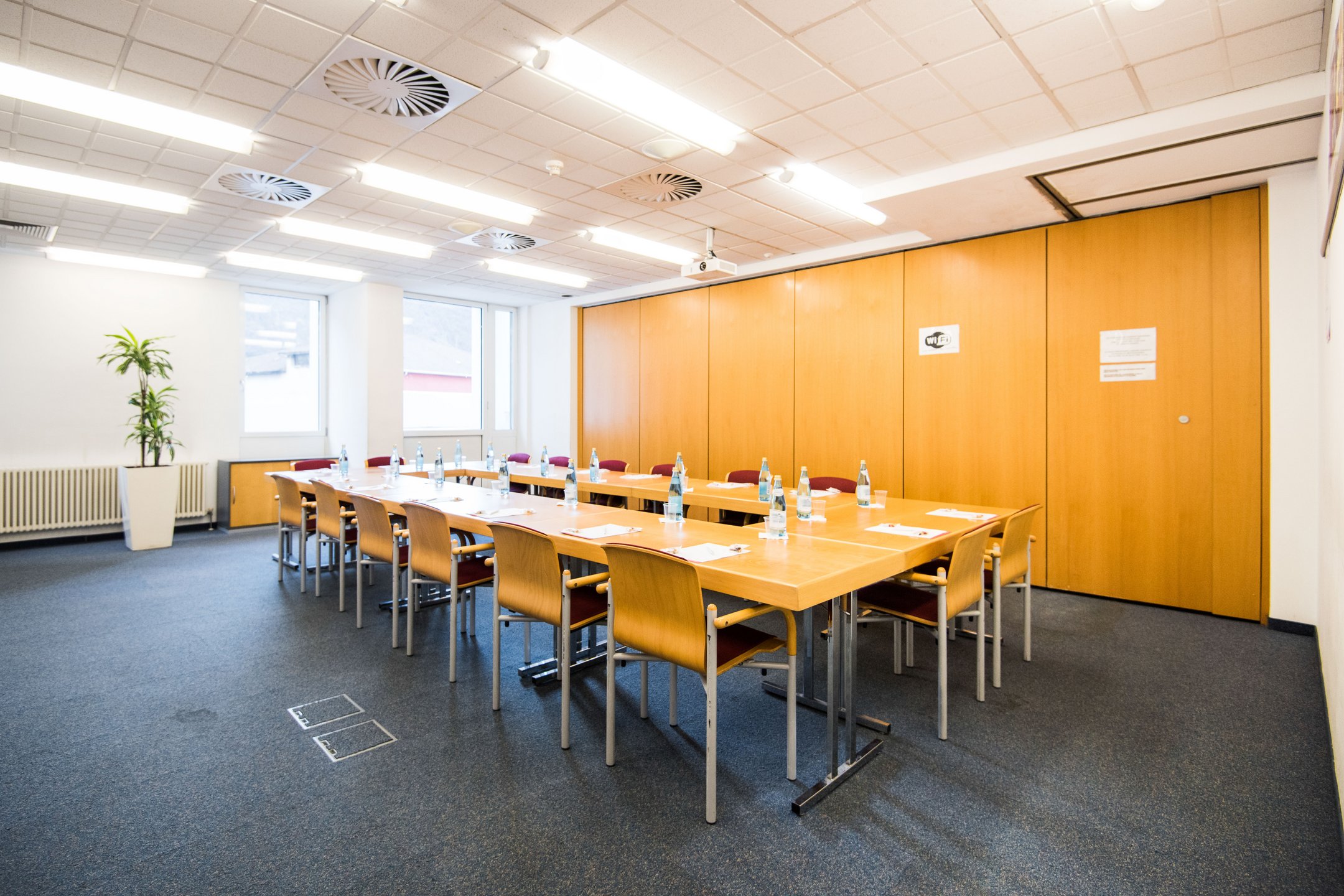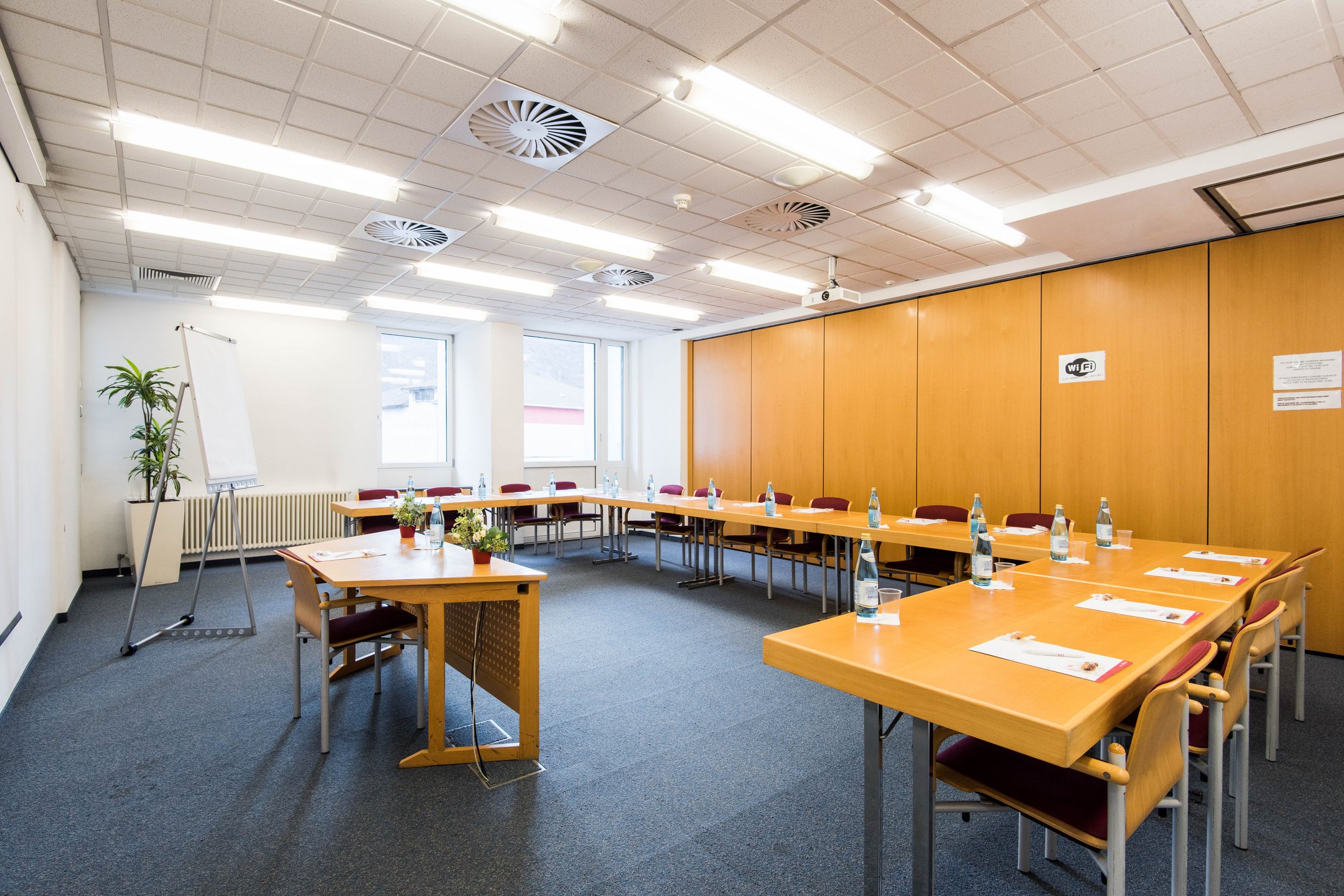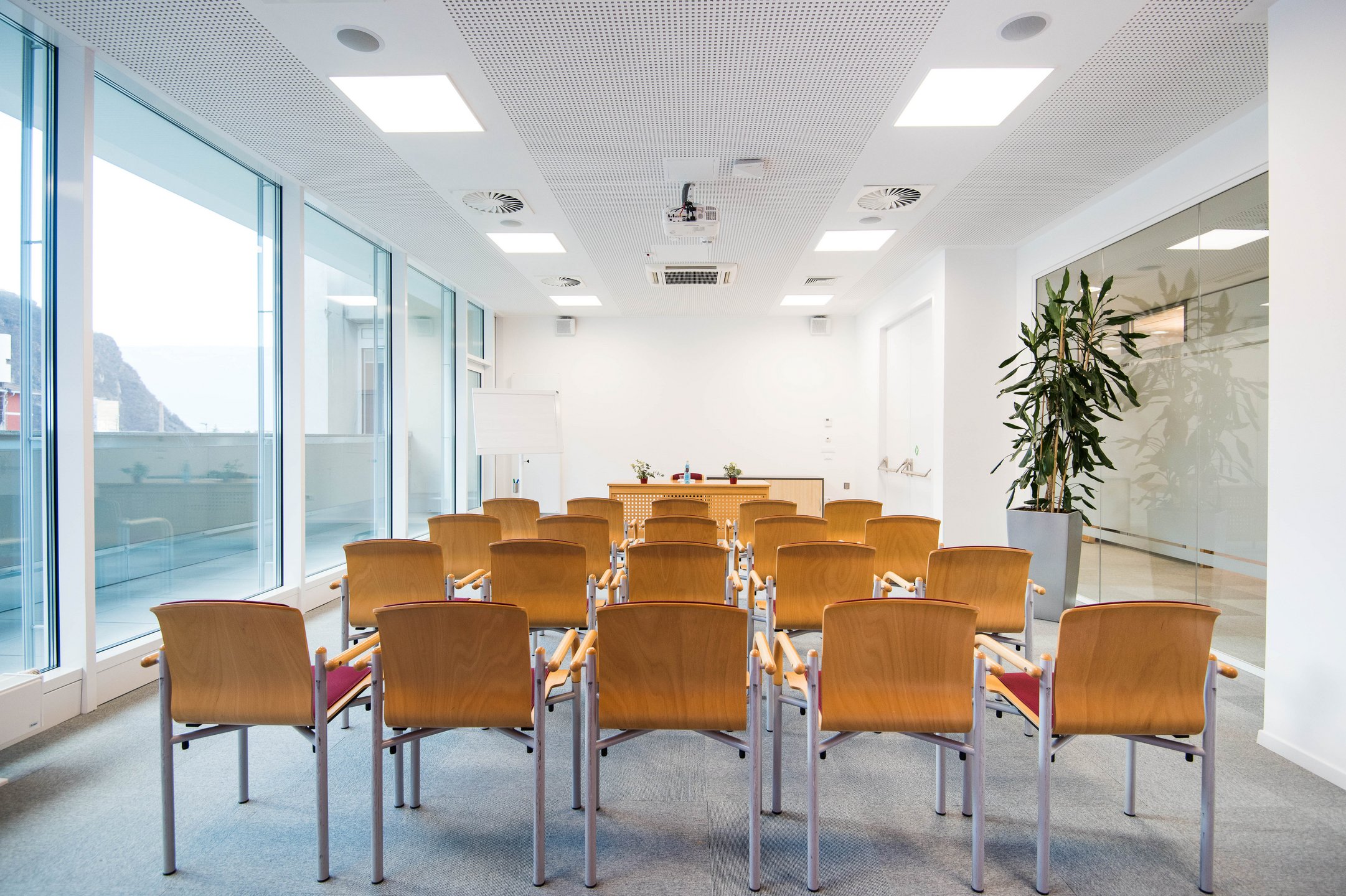 Sala Merano Aqua Minerale con attrezzatura tecnica per riunioni e corsi die formazione online