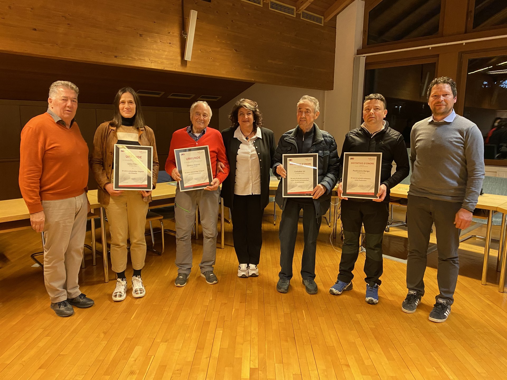 Un momento emozionante è stato il saluto al sindaco Robert Rottonara, che non si è più candidato dopo tre mandati. Ariane Alfreider, presidente comunale di lvh.apa, lo ha ringraziato calorosamente per il suo pluriennale sostegno e per la sua disponibilità nei confronti dell'artigianato della regione. Il sindaco Rottonara ha reso omaggio ai mestieri artigianali e allo sviluppo positivo della regione grazie alle aziende artigiane. Un altro momento saliente è stata la premiazione di imprenditori di lunga data per il loro costante lavoro nel settore dell'artigianato. Sono stati premiati i seguenti titolari: Salon Petra di Canins Petra (30 anni), Pedevilla Wilhelm (35 anni, assente), Lavasecco Giustina di Leonardi sas (45 anni), Costabiei srl (50 anni), Pasticceria Dorigo (55 anni) ed Elektro Dapunt (70 anni).
