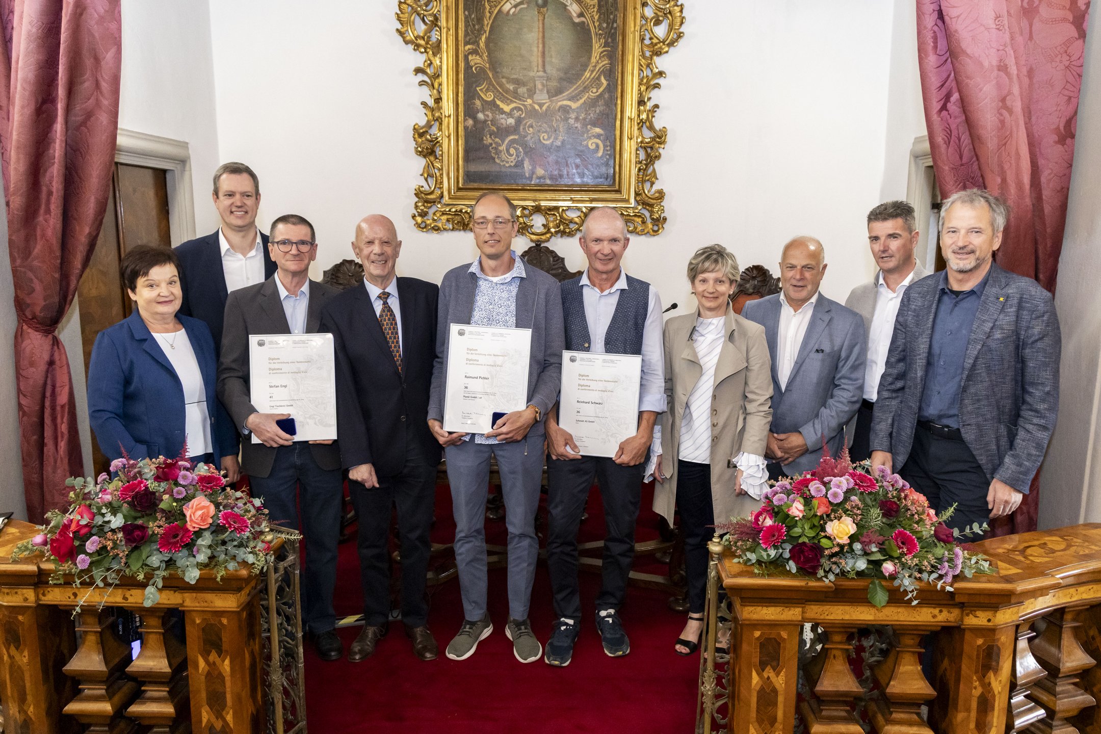 Tra le persone premiate figurano anche tre artigiani: Stefan Engl, di Campo Tures, impiegato da 41 anni presso la Falegnameria Engl di Sand in Taufers, Raimund Pichler, della Falegnameria Plankl srl di San Genesio, e Reinhard Schwarz, della Lattoneria Schmidt AS srl di Bolzano, i due ultimi entrambi da 36 anni nelle rispettive aziende.