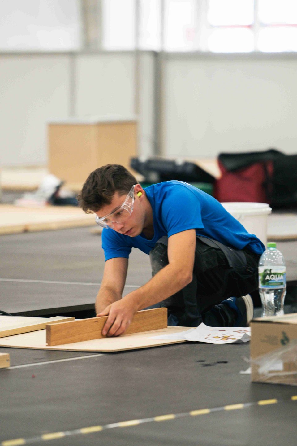 Nella categoria posa di pavimenti, Alex Libardi ha dovuto affrontare due compiti difficili il primo giorno. Innanzitutto, è stato necessario adattare l'altezza del pavimento a un profilo con massa di cemento. Poi è stato necessario posare un pavimento in parquet. Anche in questo caso ha superato le sfide a pieni voti.