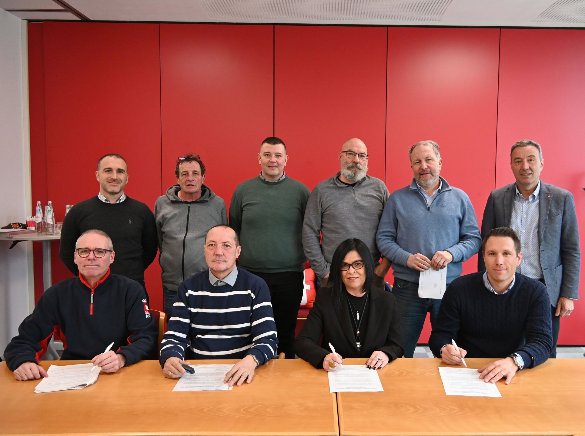 Nella foto (da sinistra): seduti: Stefan Schwarze (FILLEA-GBH/CGIL), Werner Blaas (ASGB Bau), Sylvia Gall (FILCA-SGB/CISL), Fritz Ploner (Presidente Gruppo Edilizia lvh.apa), in piedi: Andreas Palo (lvh.apa), Georg Plaickner (SGB/CISL), Patrizio Serra (ASGB BAU), Marco Nardini (FILLEA-GBH/CGIL), Rodolfo Gabrieli (Presidente sezione Costruzioni CNA Alto Adige Südtirol), Walter Pöhl (Direttore lvh.apa). L’accordo è stato confermato anche da Michele Pavan e Matteo Salvetti (FENEAL UIL – TNAA)– Foto © lvh.apa