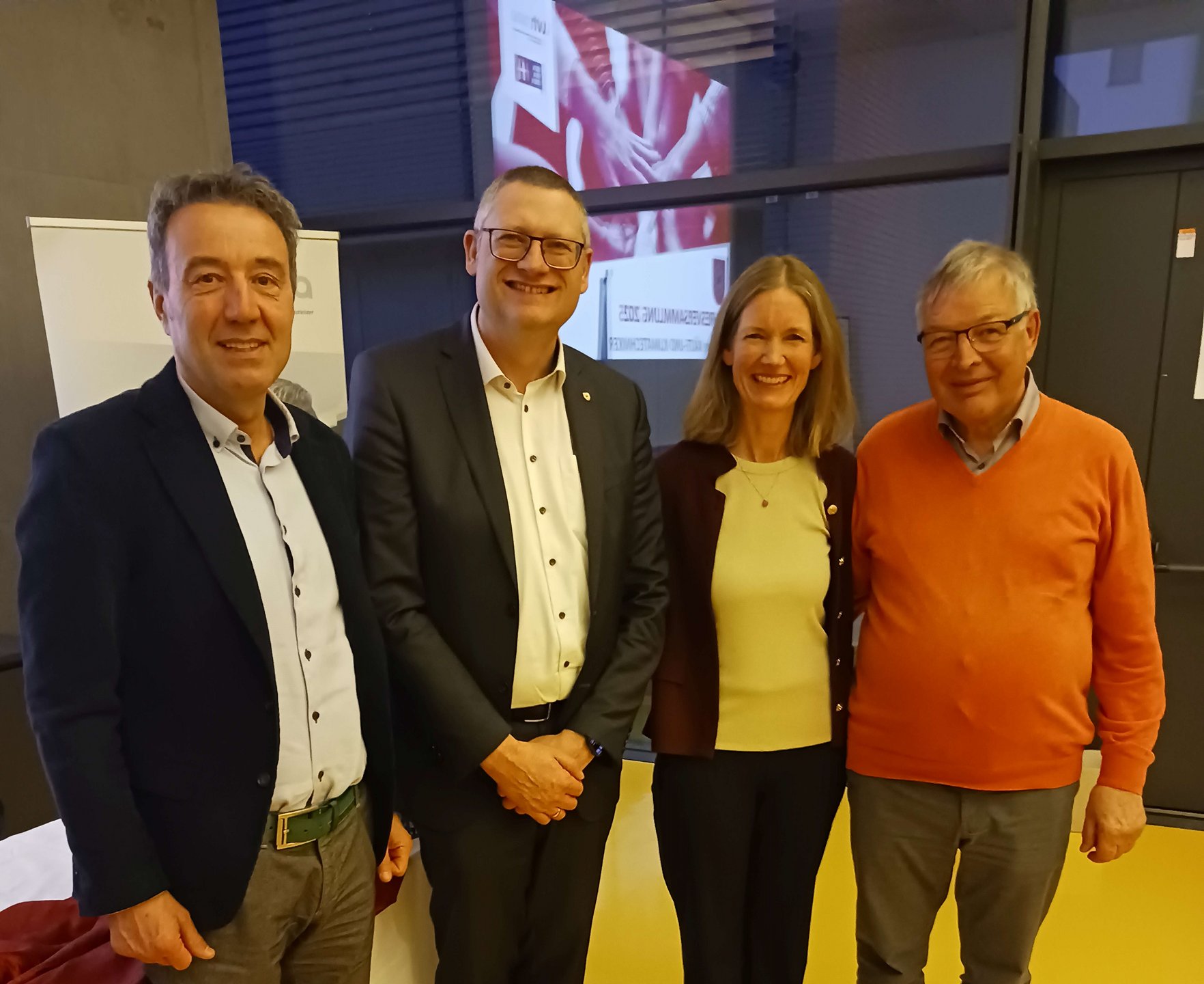 Bild 01 (v.l.n.r.): Walter Pöhl (lvh-Direktor), Peter Prieth (Direktor der deutschen Berufsbildung), Heidi Röhler (Obfrau) und Josef Haspinger (ehemaliger Berufsschuldirektor) – Foto © lvh.apa