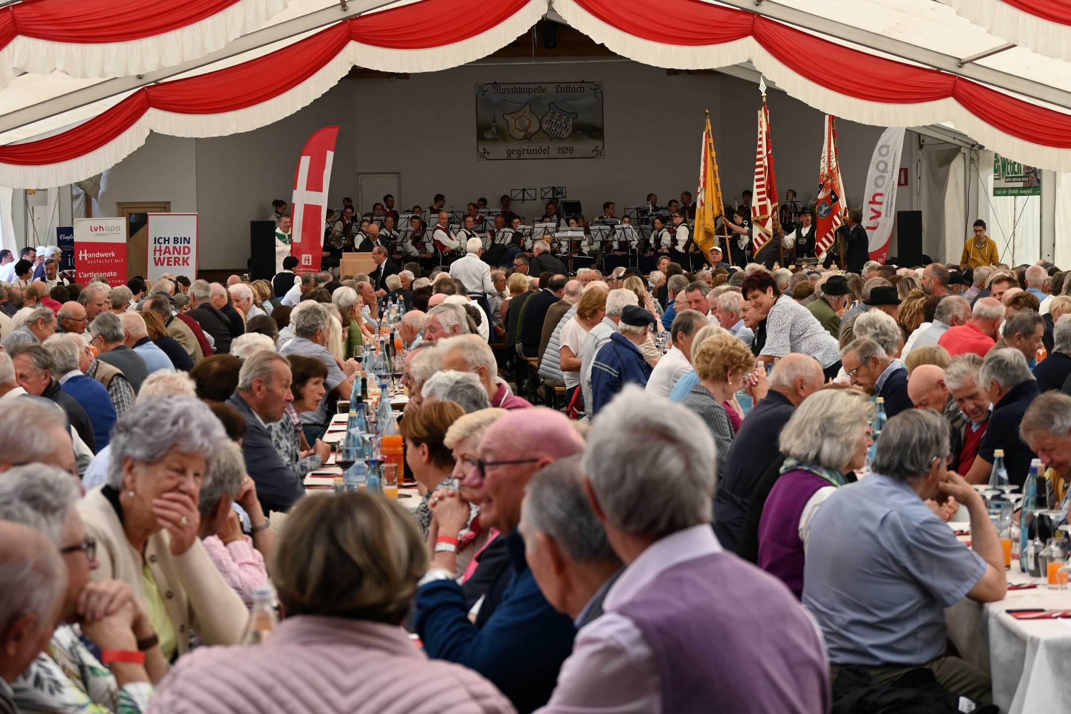 600 Seniorinnen und Senioren aus dem ganzen Land waren nach Luttach gekommen, um am traditionellen Althandwerkertreffen teil zu nehmen. Der Festplatz war bis auf den letzten Platz belegt und die Stimmung war von guter Laune, Gelächter und zahlreichen Gesprächen geprägt. Vorbildhaft organisiert wurde die Veranstaltung von der lvh-Ortsgruppe Ahrntal/Prettau. lvh-Ortsobmann Karl Rudolf Rauchenbichler unterstrich: „Ich freue mich sehr, dass so viele Gäste den Weg zu uns nach Luttach gefunden haben. Ihr Seniorinnen und Senioren seid ein wichtiger Bezugspunkt für viele Südtiroler Betriebe und Familien.“ Johann Zöggeler, Obmann der Althandwerker/innen im lvh, bedankte sich für die Organisation des Großevents: „Ein großer Dank gilt dem gesamten Organisationsteam für diesen unvergesslich schönen Tag. Das Althandwerkertreffen ist jedes Jahr ein wichtiger Höhepunkt für uns.“