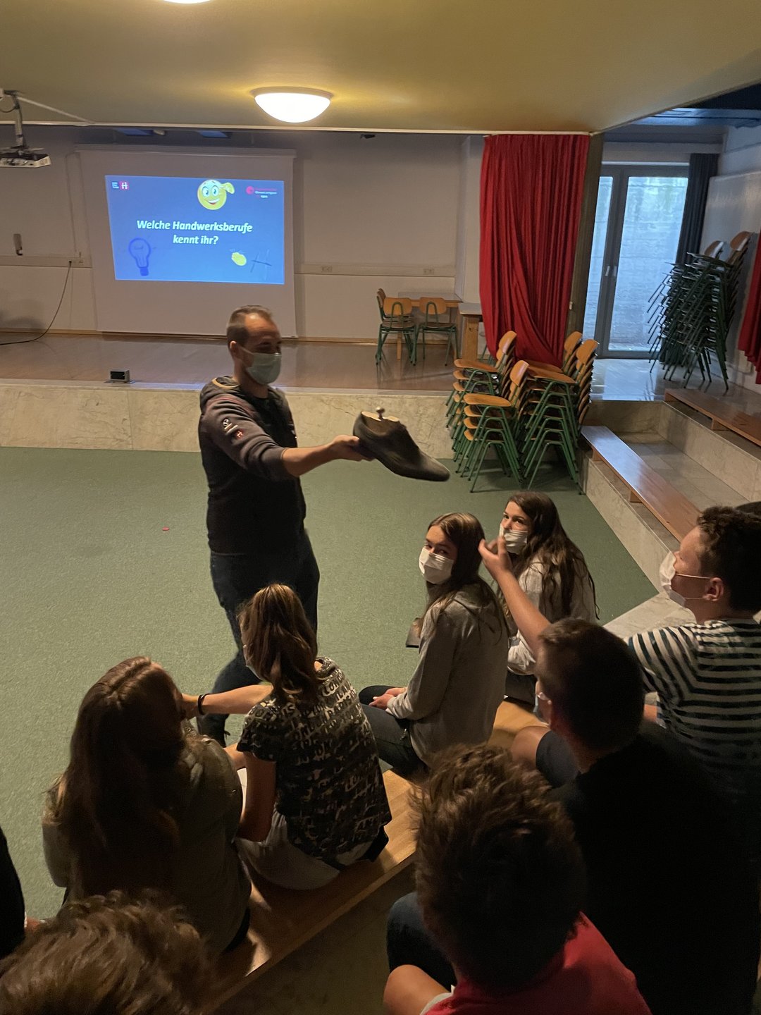 Es war ein Tag voller wichtiger und lehrreicher Informationen für die Schüler der beiden Mittelschulen St. Martin und St. Leonhard. Am Vormittag erzählte Simon Volgger von seinem Beruf als Schuster, zeigte Werkstücke und schilderte spannende Arbeitsaufträge.