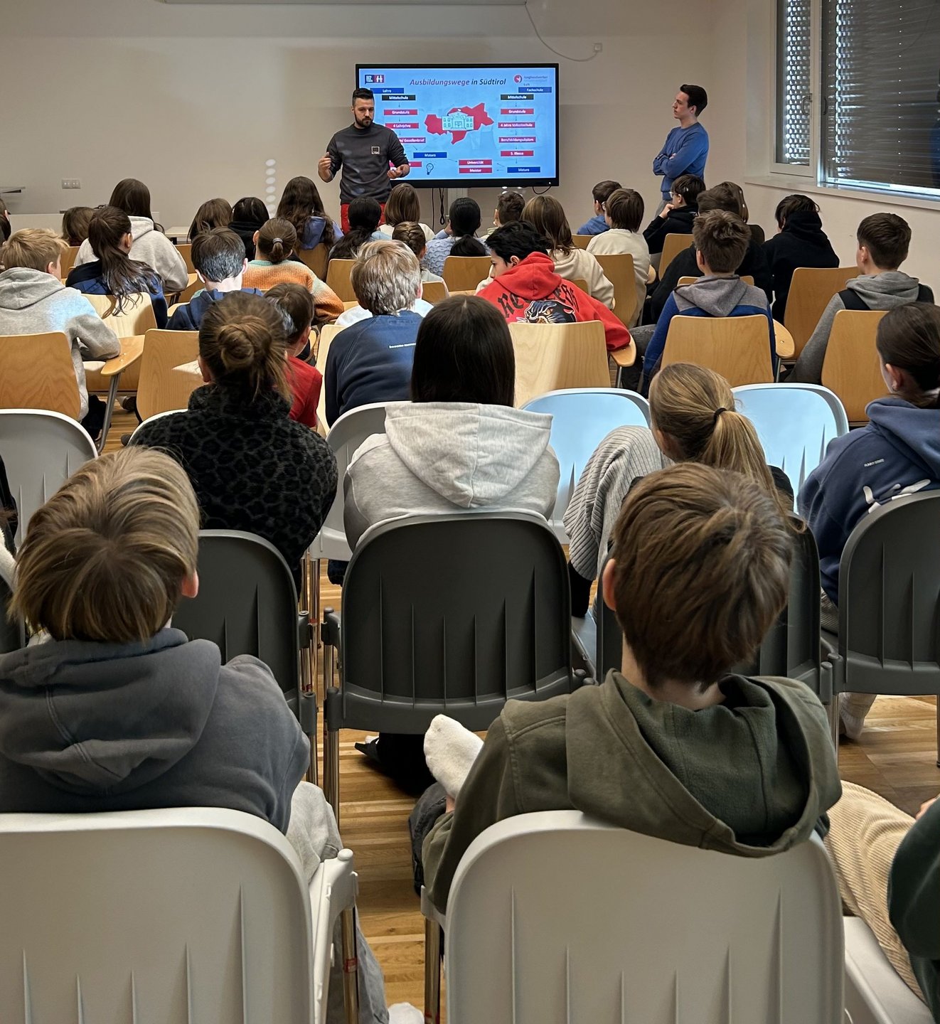 Die mit Junghandwerker/innen im lvh touren mit der Hoteliers- und Gastwirtejugend durch Südtirols Mittelschulen, diesmal waren sie an der Mittelschule in Innichen.