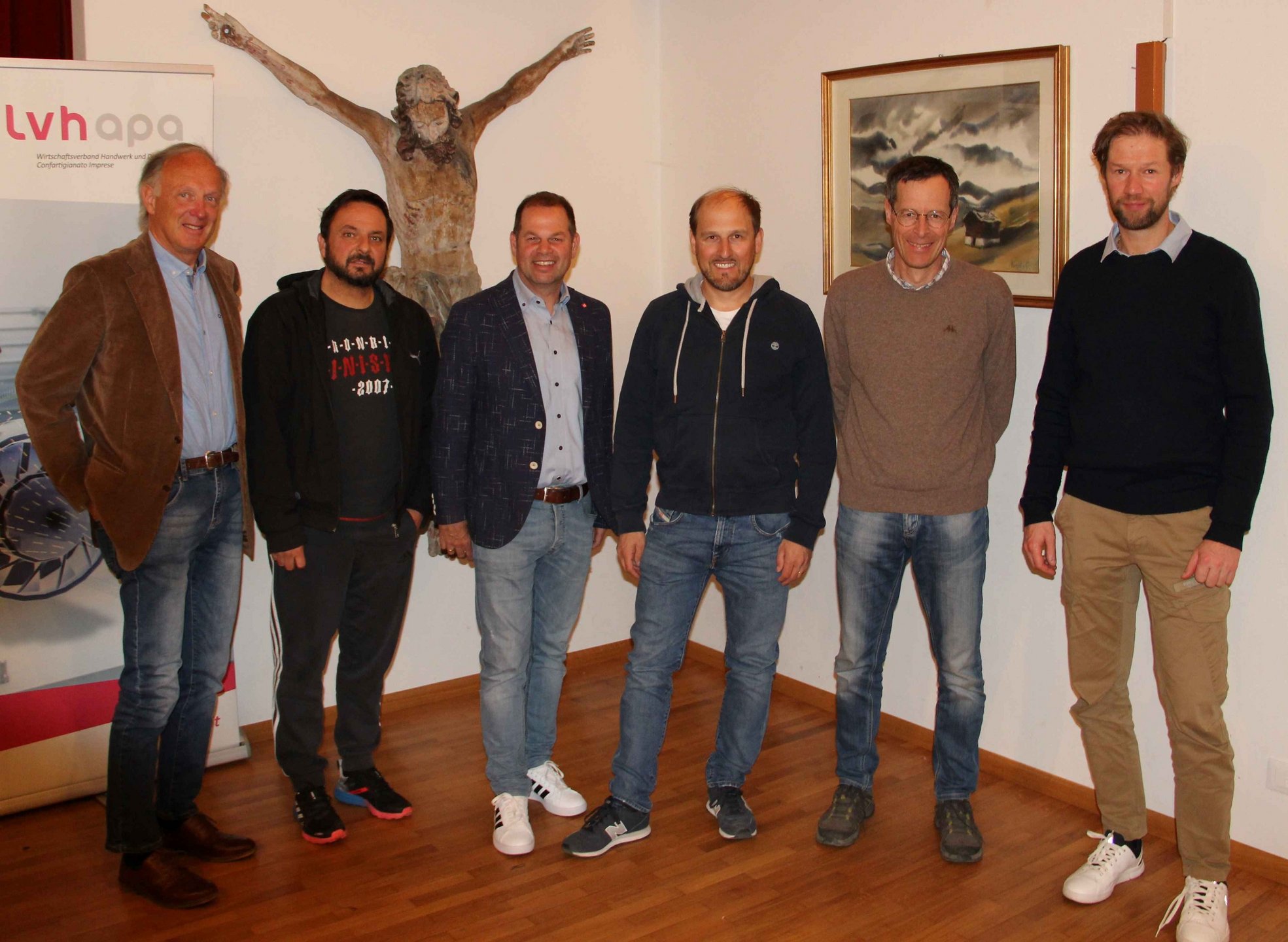 Im Bild (v.l.n.r.): Peter Grossrubatscher, Lorenz Demetz, Hannes Mussak, Filip Piccolruaz, Sigmund Holzknecht und Stephan Anvidalfarei – Foto: © lvh.apa
