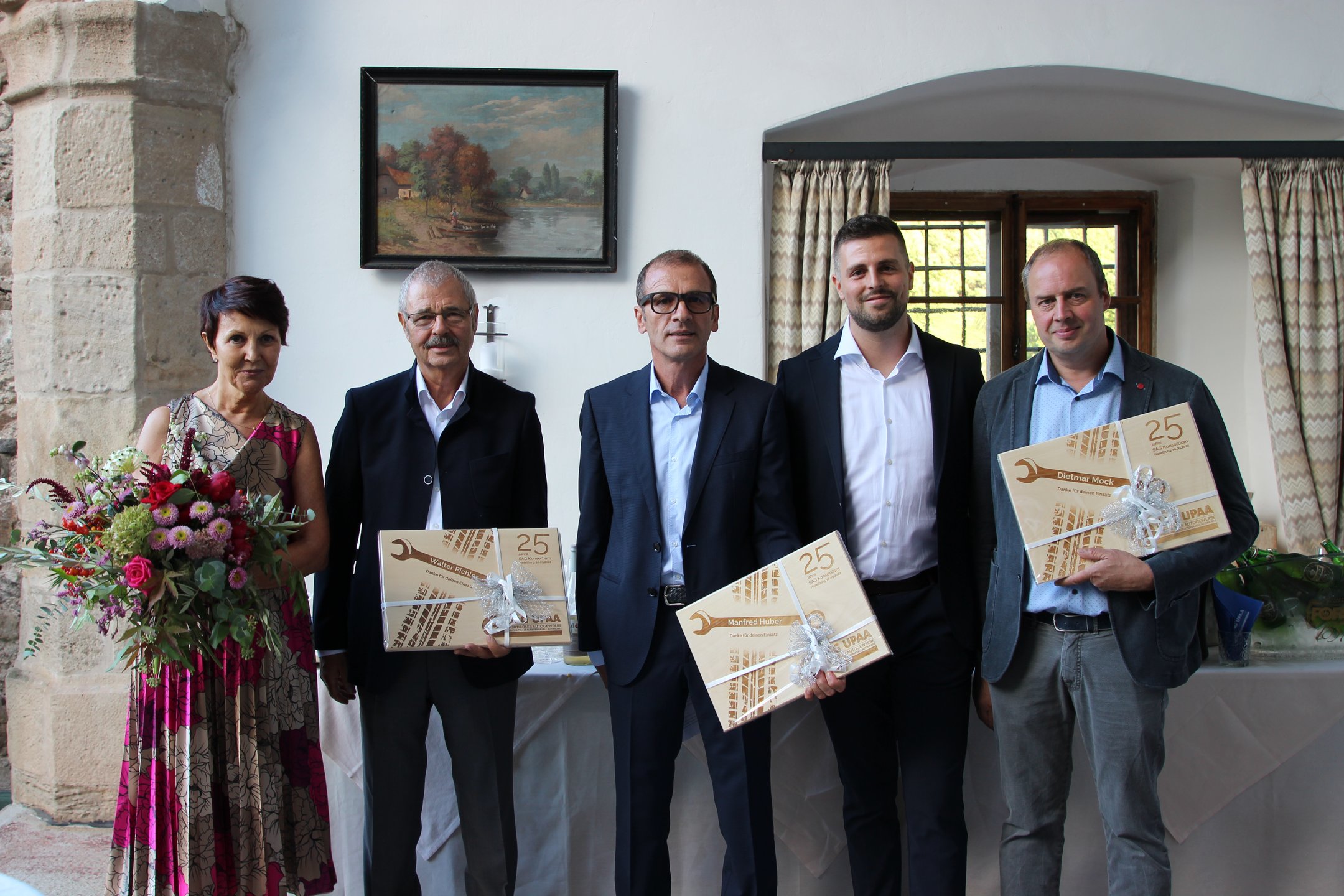 Gegründet vor 25 Jahren, ist die SAG ein Netzwerk von Südtiroler Kfz-Mechatronikern und Karosserietechnikern. Präsident Manfred Huber und Geschäftsführer Mirko Quinz begrüßten kürzlich 160 Gäste aus dem KFZ-Bereich auf der Haselburg. Unter ihnen waren Gründungsmitglieder, sämtliche Mitglieder des Konsortiums, darunter viele qualitätszertifizierte Blauschild-Werkstätten, Partner der Werkstätten sowie zahlreiche Freunde. Die Ehrengäste Felix Wyss (Präsident des Schweizer Karosserieverbandes), Erik Paul Papinski (Ex-Präsident des Weltverbandes AIRC und langjähriger Präsident des österreichischen Verbandes), Martin Haller (lvh-Präsident) und Markus Kolhaupt (Amtsdirektor der Motorisierung) überbrachten Grußworte und gratulierten zur 25jährigen Erfolgsgeschichte. Gründungspräsident Walter Pichler und der amtierende Präsident Manfred Huber führten durch die aufregende 25jährige Geschichte des Konsortiums. Mit musikalischer Begleitung und guter Stimmung feierten die Gäste bis in den späten Abend.