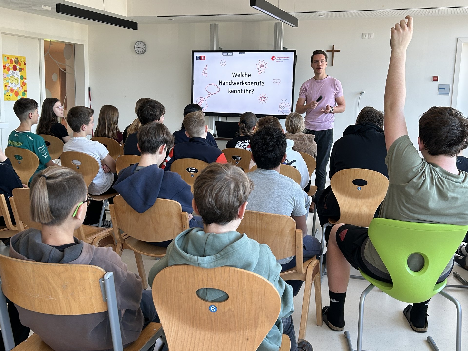 Im Bild: Elias Priller stellt die Jugendlichen die Berufe im Handwerk vor – Foto © lvh.apa