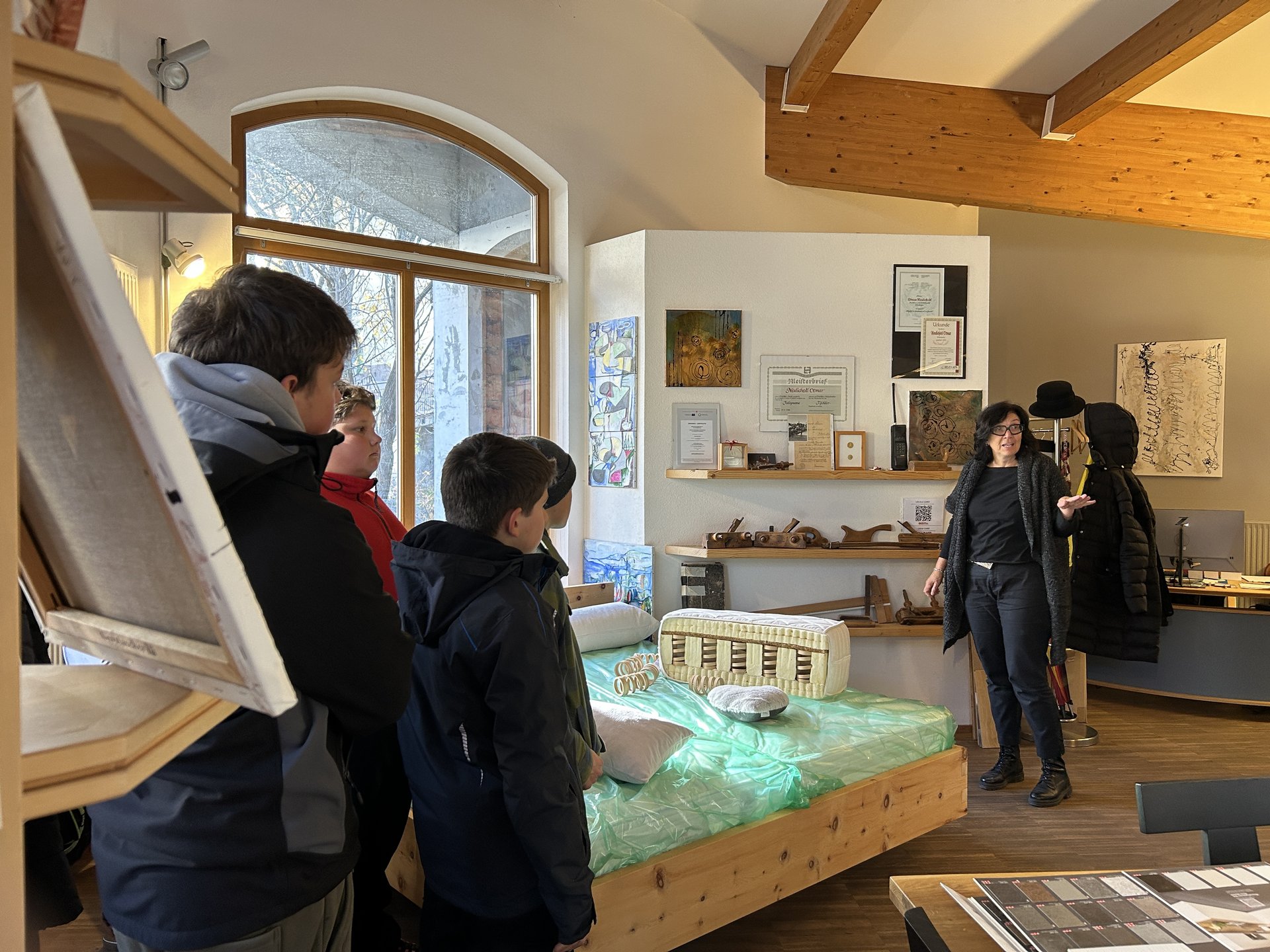 Anschließend ging es für die Schülerinnen und Schüler zu verschiedenen Betriebsbesichtigungen, um das Handwerk von seiner praktischen Seite kennenzulernen. Organisiert von den Junghandwerker/innen Eggentals wurden folgenden Unternehmen besichtigt: Auto Lunger des Lunger Erich und die Tischlerei Neulichedl Otmar. Neben den Berufen im Handwerk wurde auch über das Hotel- und Gastgewerbe informiert. „Berufe im Hotel- und Gastgewerbe sind heute wichtiger denn je. In einer Zeit, in der Work-Life-Balance für junge Menschen eine große Rolle spielen, trifft das Hotel- und Gastgewerbe mit seinen Möglichkeiten in den Bereichen Service, Rezeption, Küche und Management genau den Zeitgeist“, betont Daniel Schölzhorn, der Obmann der Hoteliers- und Gastwirtejugend. Bei einer lebendigen Präsentation erhielten die Mittelschülerinnen und Mittelschüler einen kompakten Einblick, wo man diese Berufe erlernen kann und welche vielfältigen Karrierechancen die Branche bietet.