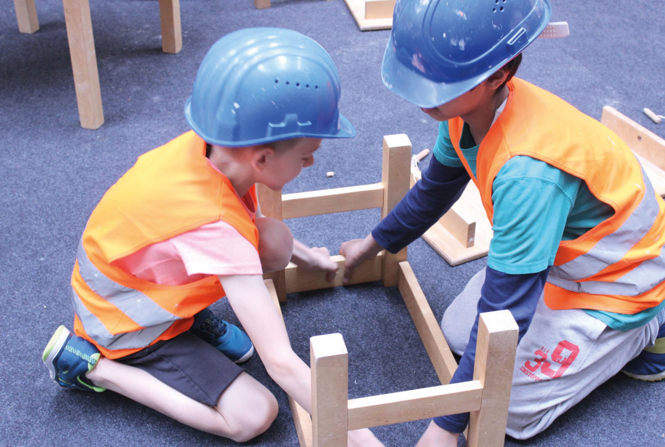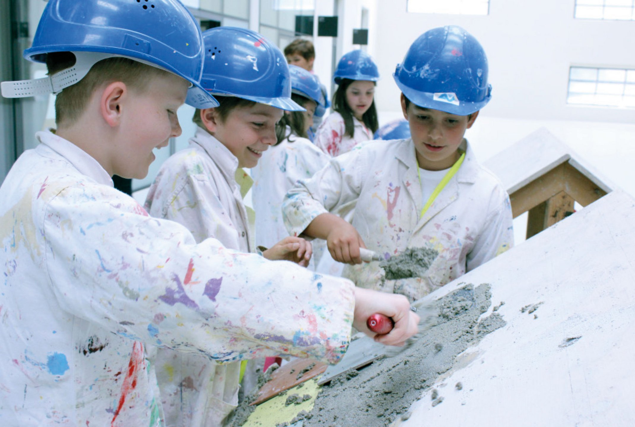 An 14 Stationen könnt ihr planen, messen, mörteln, tischlern, malen, pflastern und vieles mehr. Ihr lernt auf spielerische und praktische Weise die Berufe am Bau kennen.