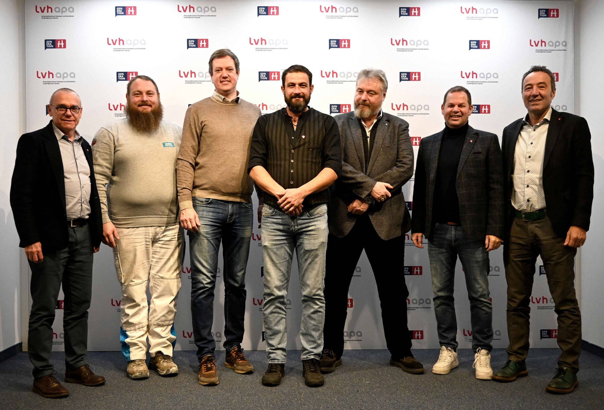 Im Bild (v.l.n.r.): lvh-Direktor Thomas Pardeller, Norbert Lang (lvh-Ortsobmann Villnöss), lvh-Präsident Martin Haller, Landtagsabgeordneter Hannes Rabensteiner, lvh-Vizedirektor Thomas Hager, lvh-Vizepräsident Hannes Mussak und lvh-Vizedirektor Walter Pöhl – Foto © lvh.apa