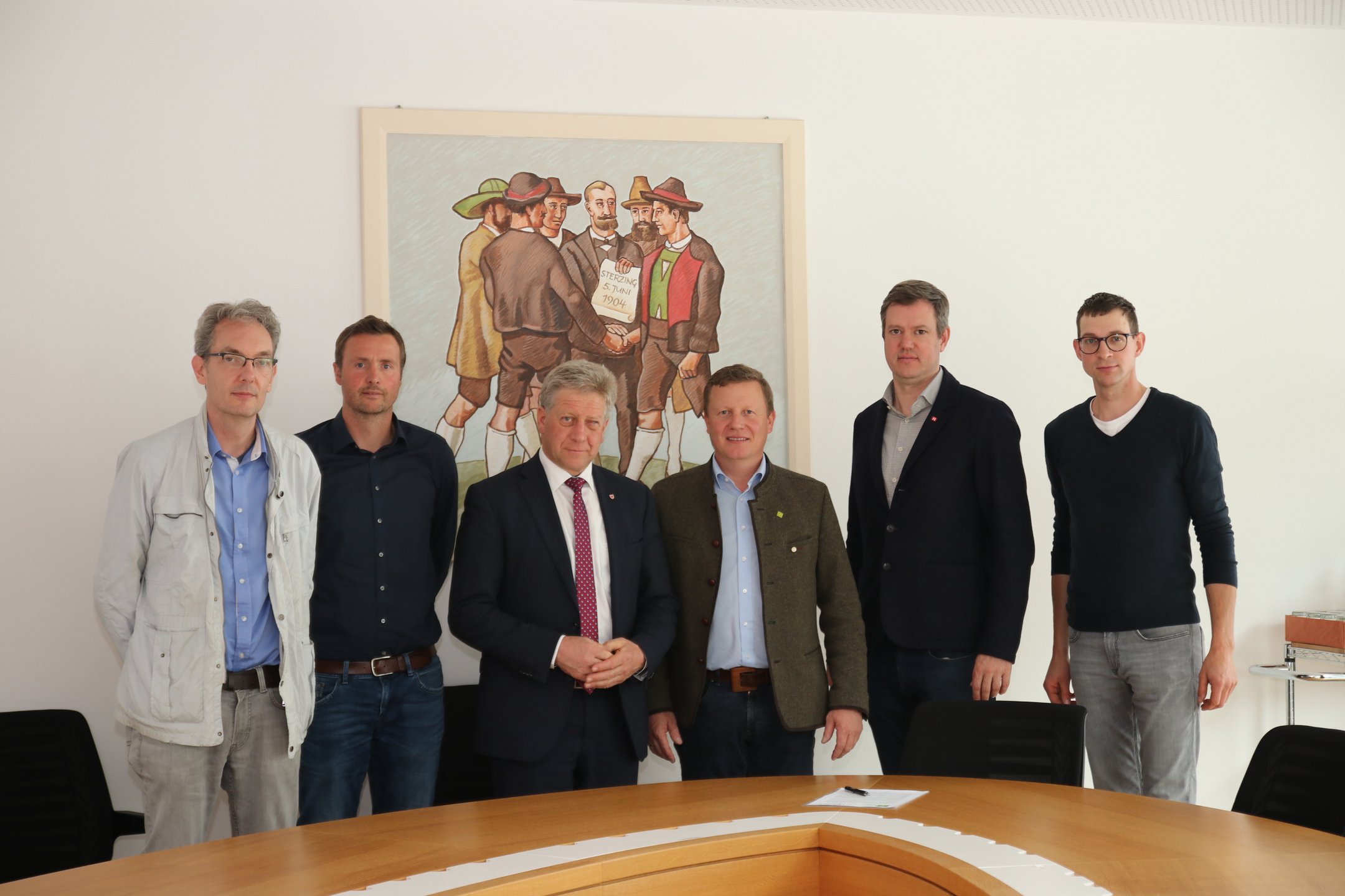 Im Bild: Wolfgang Egger (Berufsgruppe Holz, lvh.apa), Arnold Filippi (Obmann der Sägewerker/innen, lvh.apa), Franz Locher (Vorsitzender des Arbeitskreises Wald, Holz und Almen im SBB), Daniel Gasser (Landesobmann Südtiroler Bauernbund), Martin Haller (Präsident lvh.apa) und Johannes Spornberger (Obmann der Waldarbeiter/innen, lvh.apa) haben die Charta gegen den aktuellen Entwurf der EU-Entwaldungsverordnung unterzeichnet. Sie befürchten eine Gefahr für die traditionelle Waldbewirtschaftung.