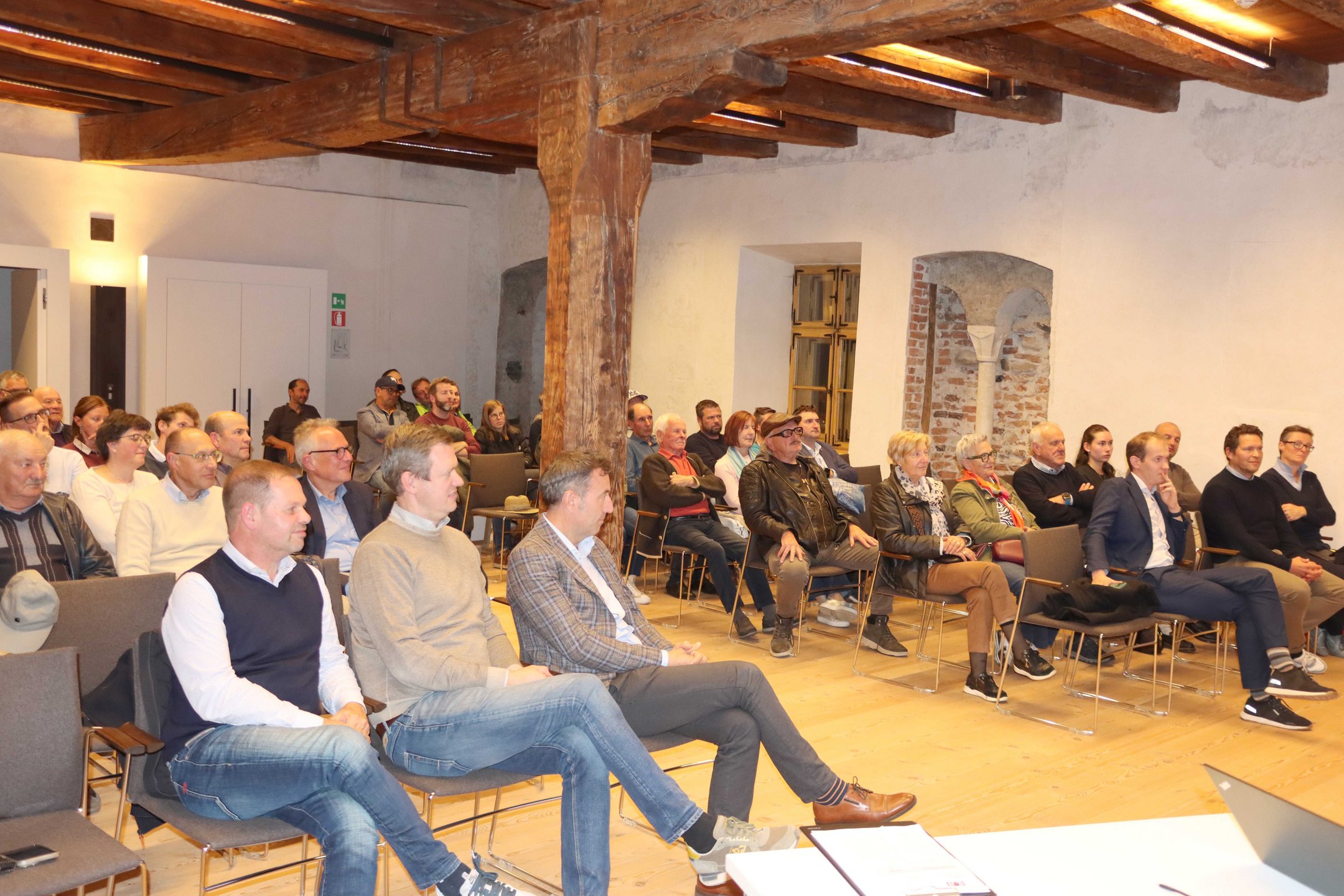 Davide Complojer, Bezirksobmann des Unterpustertals und Gadertals, dankte zu Beginn allen gewählten Vertreterinnen und Vertretern aus den beiden Bezirken – insgesamt 32 Personen, die sich bei den Gemeindewahlen erfolgreich engagiert haben. In seinem Rückblick erinnerte er an ein ereignisreiches Jahr mit zahlreichen Initiativen, darunter der Generation-H-Aperitif mit drei goldenen Ehrungen, die KidsAcademy in Bruneck mit über 50 teilnehmenden Kindern sowie das große Familienprojekt „Abenteuer Handwerk“, das rund 2.000 Kinder und Angehörige begeisterte. Zugleich sprach Complojer den Gemeinden für ihre finanzielle Unterstützung Dank aus – stellvertretend an Robert Alexander Steger, Präsident der Bezirksgemeinschaft.
