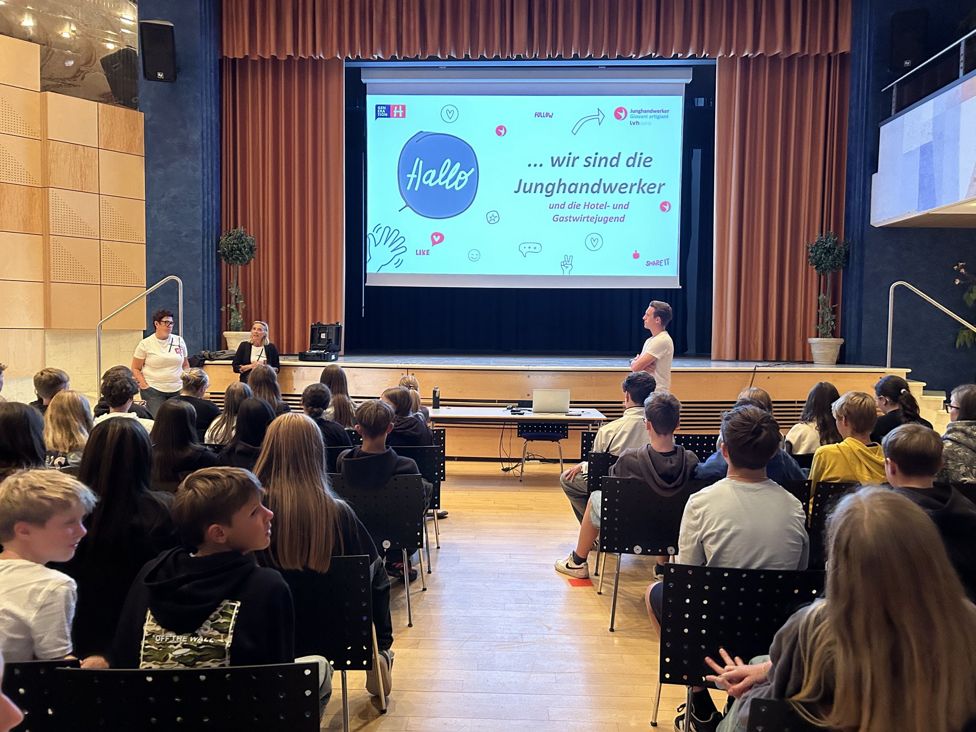 Speziell in einer Zeit, in der immer mehr Fachkräfte gefragt sind, garantiert das Handwerk interessante und sichere Arbeitsplätze, betonte Elias Priller, Koordinator der Junghandwerker/innen im lvh, beim Schulbesuch. Darüber hinaus bietet das Handwerk attraktive Arbeitsmöglichkeiten im Umgang mit modernsten Technologien, genügend Möglichkeiten für innovative Ideen und Projekte sowie spezifische Arbeitsgebiete.