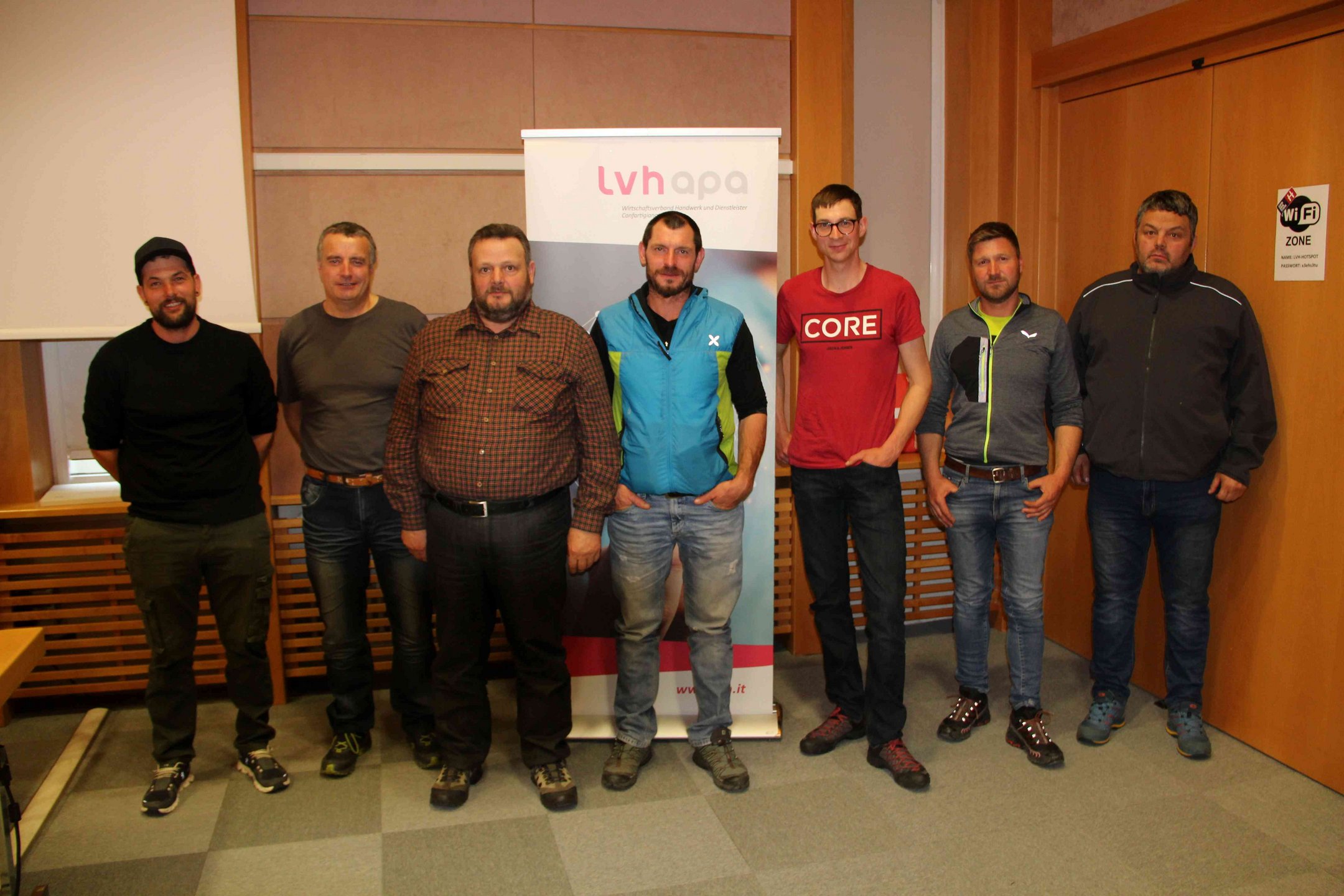 Der anschließend neu gewählte Berufsbeirat setzt sich wie folgt zusammen: Thomas Frank, Johann Staffler, Hermann Trafoier, Harald Engl, Johannes Spornberger, Oswald Schwarz und Günther Kirchler engagieren sich die nächsten fünf Jahre für die Berufsgemeinschaft der Waldarbeiter/innen im lvh.