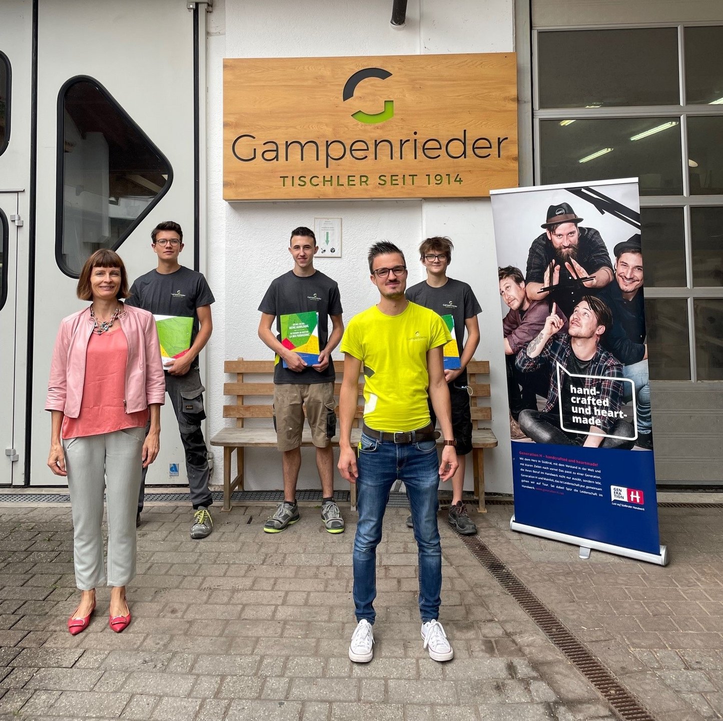 Im Bild (von links): Die Lehrlinge Moritz Innerhofer, Christian Rainer und Philip Lang mit Cäcilia Baumgartner und Patrick Gampenrieder.
