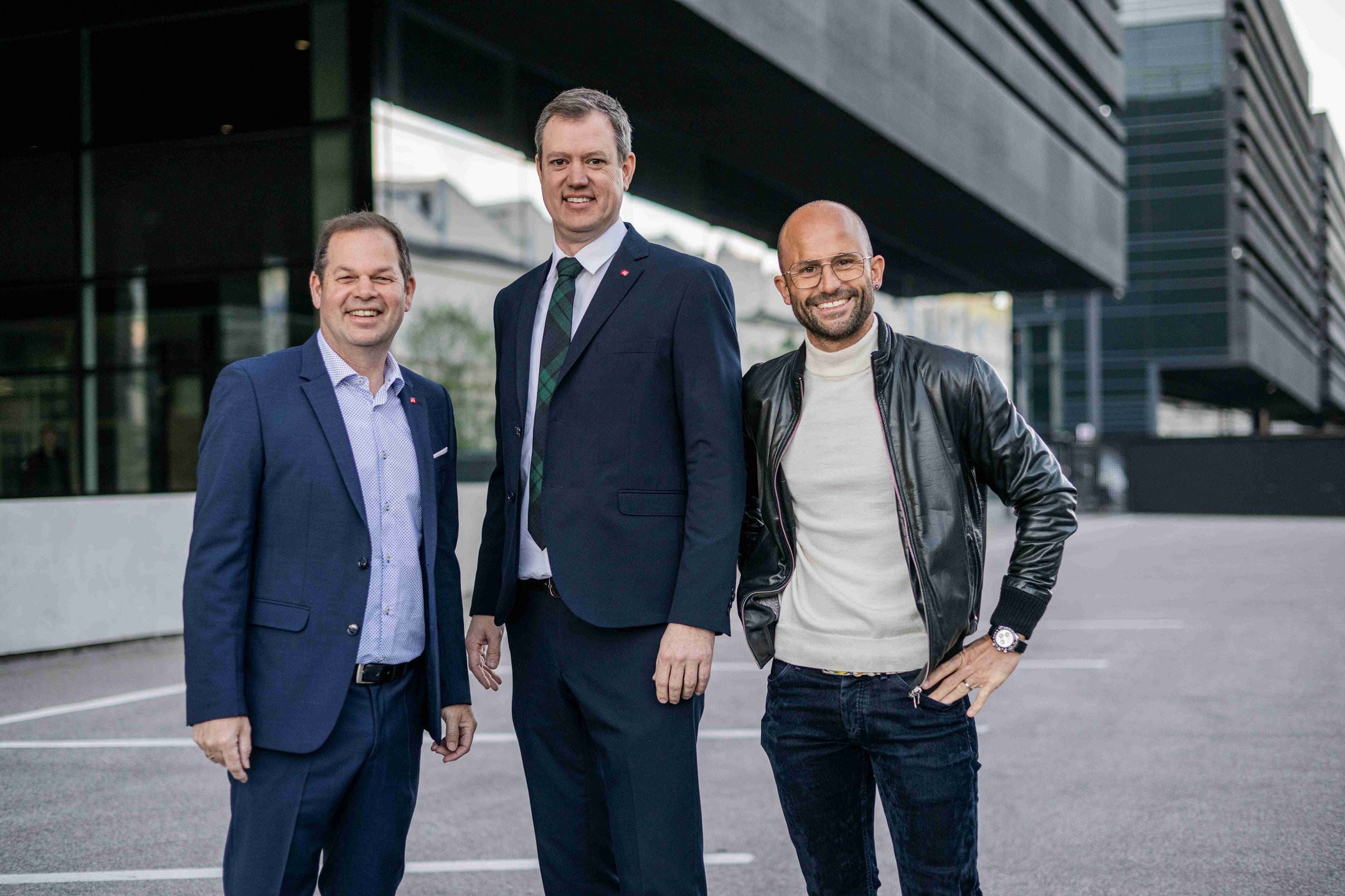 Im Bild: Das alte und neue lvh-Präsidium (v.l.n.r.): Vizepräsident Hannes Mussak, Präsident Martin Haller und Vizepräsident Giorgio Bergamo – Foto © Harald Wisthaler