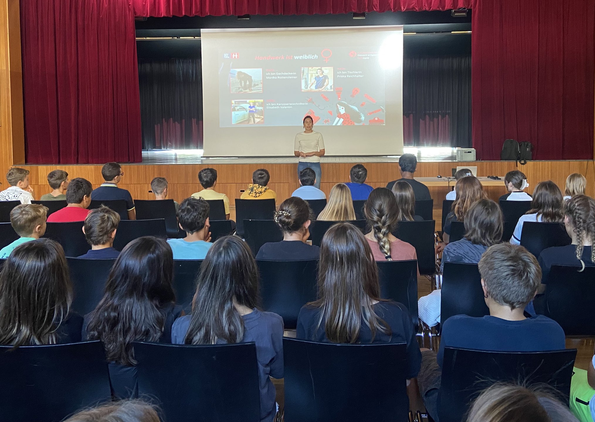 Seit über zwanzig Jahren besuchen die Junghandwerker/innen im lvh gemeinsam mit der Hotel- und Gastwirtejugend des HGV die Mittelschulen Südtirols, um den Jugendlichen die vielfältigen Karrieremöglichkeiten in diesen Bereichen näherzubringen.