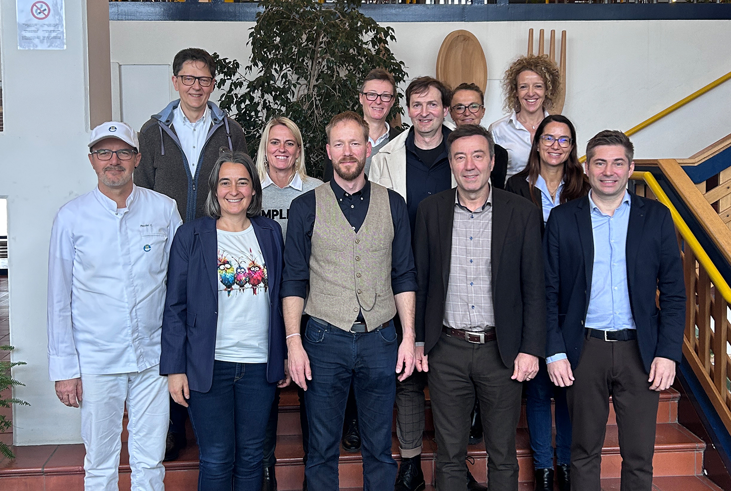 Begleitet wurde der Besuch von weiteren Vertreterinnen und Vertretern des Berufsbildungszentrums Hellenstainer: Sabine Kerschbaumer, Leiterin des Sekretariats, Joachim Zössmayr, Mitglied des Leitungsteams, Peter Amrain, zuständig für Bauerhaltung und Arbeitssicherheit, sowie Christian Passler, Fachgruppenleiter Nahrungsmittel. Sie standen der Delegation für Fragen zur Organisation, Infrastruktur und fachlichen Ausrichtung der Ausbildung zur Verfügung.