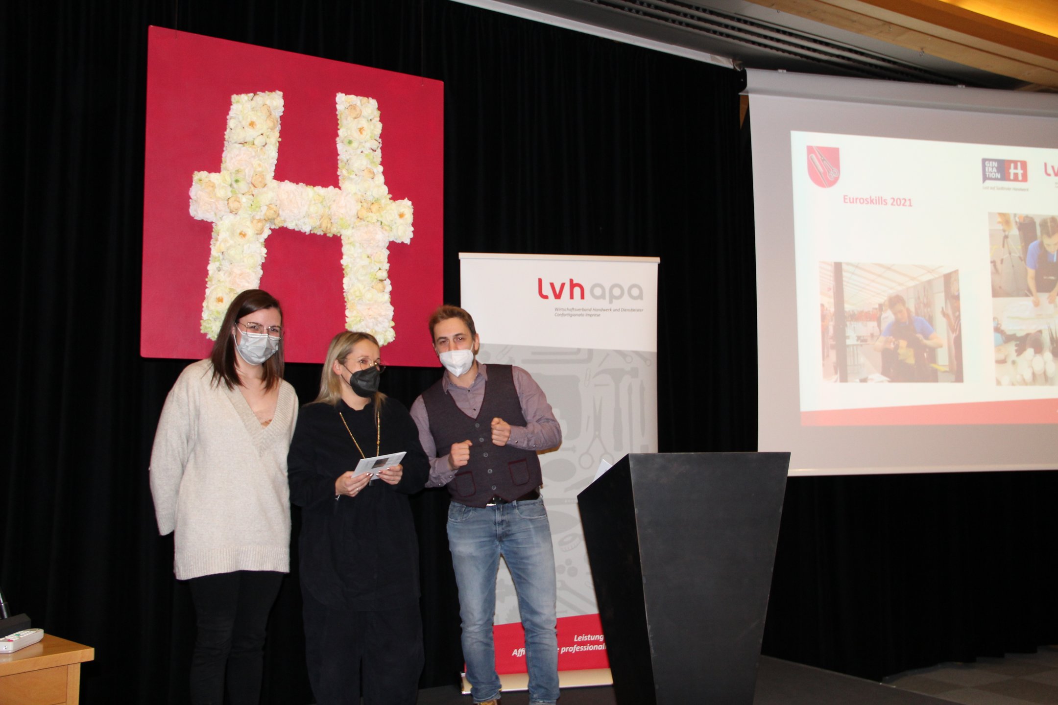 Ein wahres Highlight im letzten Jahr waren die EuroSkills 2021 in Graz. Lisa Marie Winding ging dabei für die Friseure in den Wettbewerb. Mit Hilfe von Expertin Margit Gostner konnte sie die Silbermedaille holen. Obmann Pettinà überreichte den beiden im Namen der Berufsgemeinschaft als Zeichen der Wertschätzung einen Wellnessgutschein für das 5-Sterne-Andreus Resorts. Bei der Jahresversammlung gab lvh-Vizedirektor Walter Pöhl einen Überblick über wichtige Themen wie Digitalisierung, Nachhaltigkeit und Kooperation, die für die Friseure immer wichtiger werden.