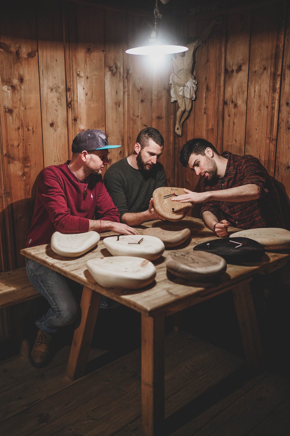 Einst war dieses Designerstück nur ein Wunsch nach etwas Neuem. Die drei Gründer des Unternehmens „huamet“ hatten die Idee, eine Uhr zu bauen, welche ganz anders sein sollte. Schon seit 2015 bearbeiten sie Holz mithilfe eines Lasers. Ihr Ziel war es, etwas ganz Innovatives zu schaffen. Die Uhr sollte nicht mehr den gängigen Konventionen folgen, sondern eine neue Erfindung sein und die Darstellung von Zeit in ein neues Licht rücken. Aus diesem Grund besuchten Tobias Egger, Armin Laimer und Florian Schwienbacher einen Produktentwicklungs-Workshop und tüftelten zwei Nachmittage lang an diversen Ideen. Der Wirtschaftsverband Handwerk und Dienstleister lvh.apa hatte diesen Orientierungsnachmittag für sie organisiert. Aus den Ergebnissen, die aus dem Brainstorming hervorgingen, entwickelten sich erste konkrete Ansätze.