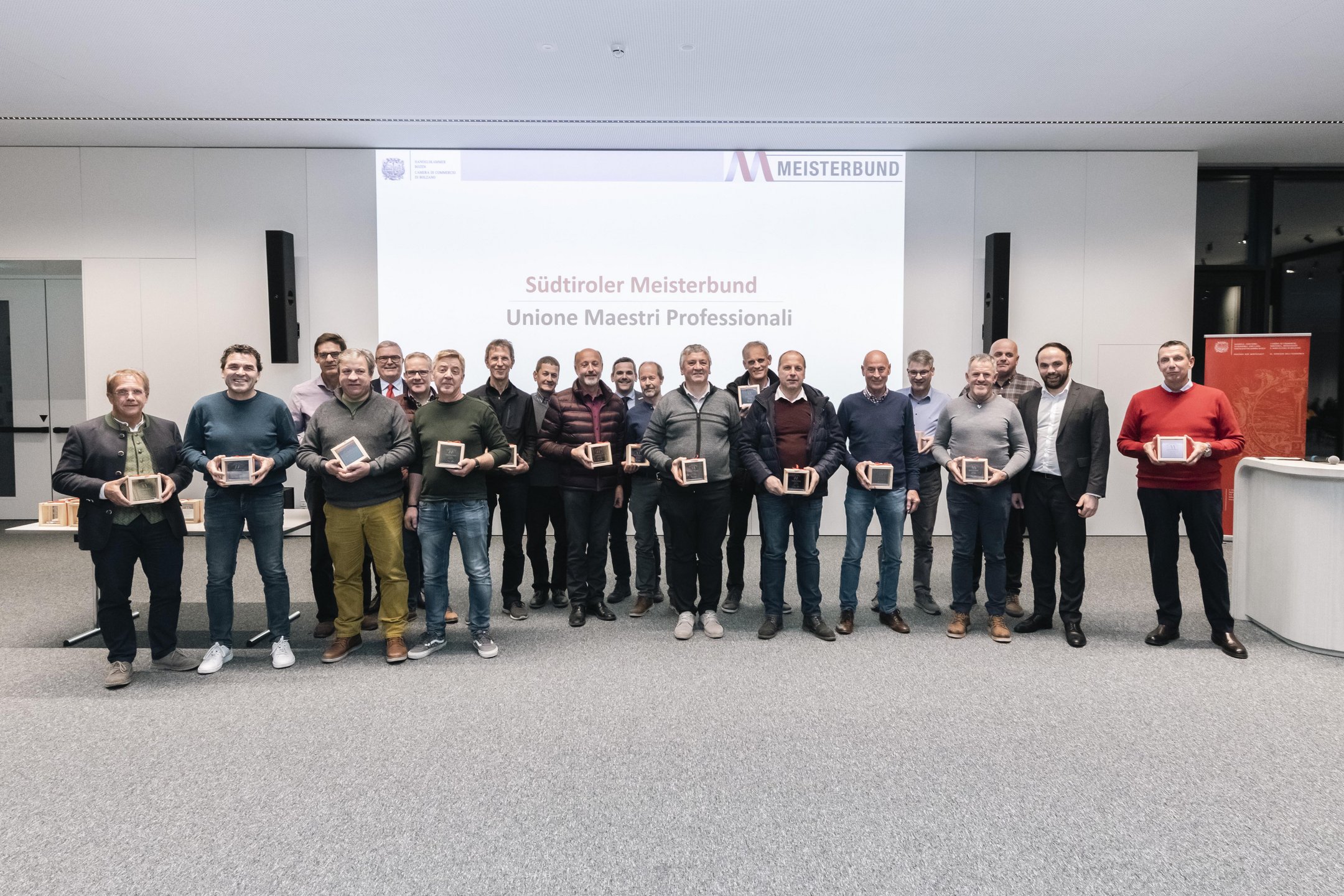 Für den 30jährigen Besitz des Meisterbriefes geehrt wurden Walter Vaja (Tiefbau), Karl Christanell und Andreas Steck (Maler und Lackierer), Richard Nocker (Baumeister und Maurer), Franz Aschbacher, Klaus Nagler, Paul Frötscher und Othmar Waldboth (Tischler), Markus Thaler (Dachdecker), Walter Weifner, Walter Pedevilla und Johann Trojer (Installateure für Heizung- und sanitäre Anlagen), Karl Forer und Otto Krapf (Elektrotechniker), Horst Fritz (Drucker und Mediengestalter) sowie Ugo Bazzanella (Schmied und Schlosser).